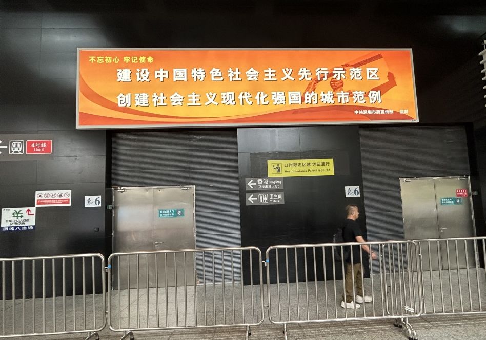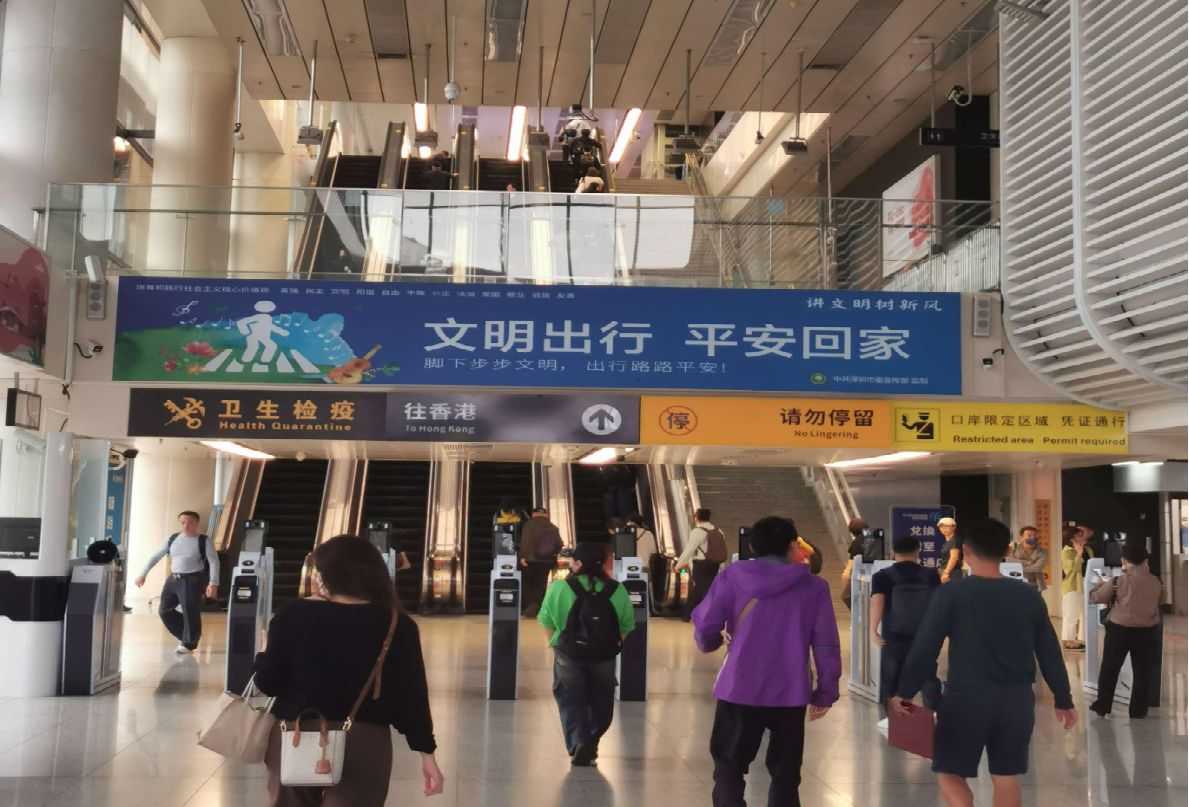 禁區(qū)內(nèi)排隊出入境的通道上,深港跨境口岸媒體,重要提示,吸引消費者蘭注