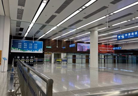 覆蓋口岸所有出入境旅客。位于直梯和扶梯旁,兩邊的人流匯集沖擊,與旅客距離近,有很好的視覺沖擊效果。