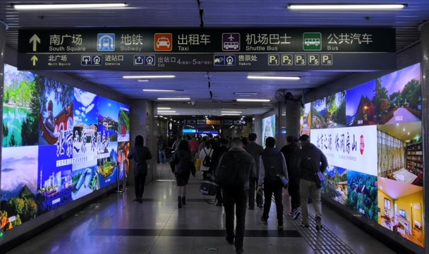 北京西站廣告-高鐵、地鐵通道LED中央大屏東西側(cè)燈箱廣告