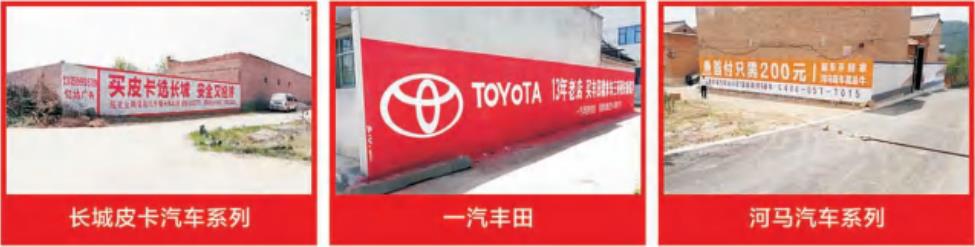 墻體廣告作為一種新興的大型戶外廣告形式,在農村和中小城市旁, 墻體廣告隨處可見,直接面對您的消費者進行宣傳,其以出現頻率高、分布范圍廣、費用低、持久性強、干擾度小等優(yōu)勢,近年來已被國內眾多知名企業(yè)選擇。