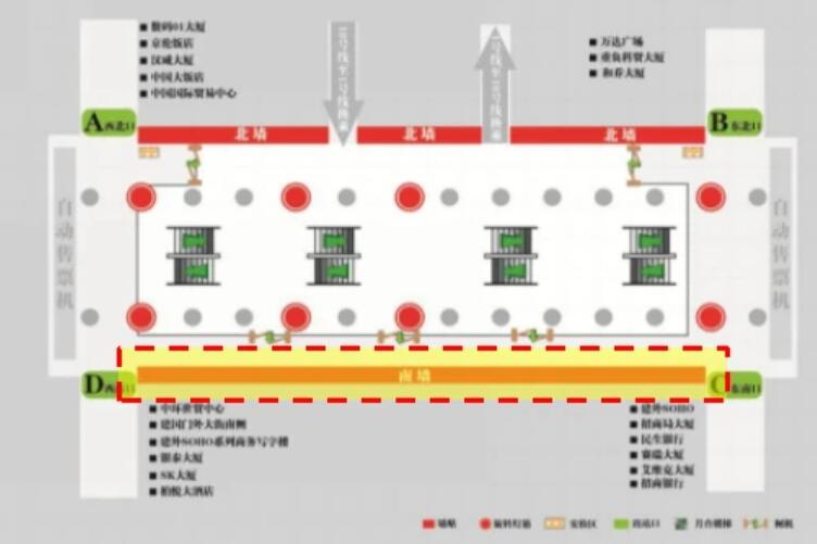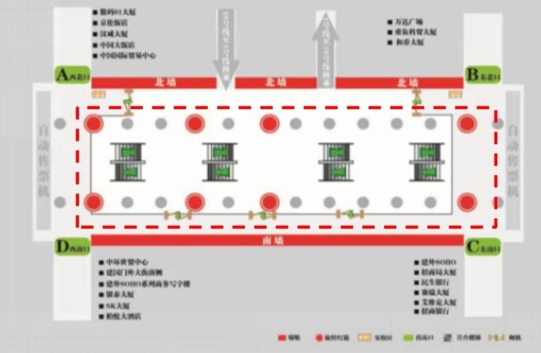 4、站廳西南側(cè)D出口:北京銀泰中心、中環(huán)世貿(mào)中心、安邦金融中心、北京國際財源中心、IFC大廈、建外SOHO西區(qū)、SK大廈、柏悅酒店