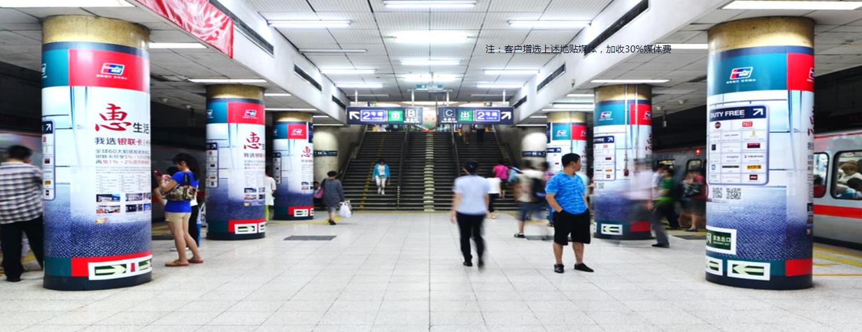 媒體優(yōu)勢與運(yùn)用: 復(fù)興門站是北京地鐵1號線與2號線的換乘站,客流量極大,臨近中國金融業(yè)最具影響力的金融中心區(qū)--金融街。站臺包柱不僅覆蓋本站乘客,大部分途經(jīng)復(fù)興門的乘客都可以形成一定印象,適合提升品牌形象。