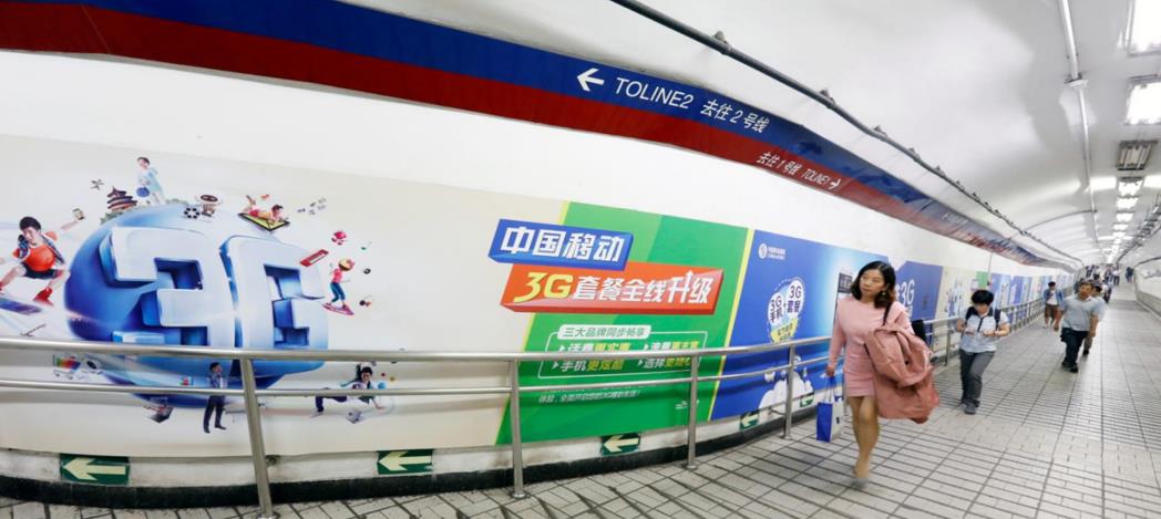 媒體位置:2號線復(fù)興門北換乘通道雙側(cè)墻貼 2號線復(fù)興門南換乘通道雙側(cè)墻貼