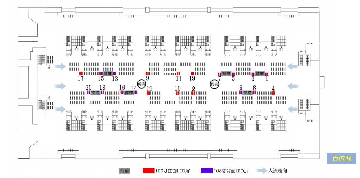 | 載 體: LED高清顯示屏 + 同步網絡傳輸 畫 面: 空中 LED:223吋~608吋;立地豎式LED:83吋~119吋;立地豎式LCD:55~98吋 分 布: 高鐵站內候車廳、檢票口、安檢口、進出口、售票廳、扶梯口及站臺等重要關口 規 格: 10秒/15秒 (平面靜態或視頻VCR) 頻 次: 每天240次 投放方式: 每周為一單元 運作時間: 特級重點大站:每天14-19小時,小站:每天13-15小時 播放形式: 一屏三式 靈活播出(全平面、上視頻+下平面、上下平面+中視頻) 注:運作時間根據站內運營需求調整 |
