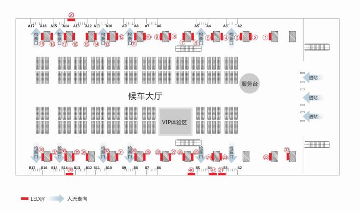 | 載 體: LED高清顯示屏 + 同步網(wǎng)絡(luò)傳輸 畫(huà) 面: 空中 LED:223吋~608吋;立地豎式LED:83吋~119吋;立地豎式LCD:55~98吋 分 布: 高鐵站內(nèi)候車(chē)廳、檢票口、安檢口、進(jìn)出口、售票廳、扶梯口及站臺(tái)等重要關(guān)口 規(guī) 格: 10秒/15秒 (平面靜態(tài)或視頻VCR) 頻 次: 每天240次 投放方式: 每周為一單元 運(yùn)作時(shí)間: 特級(jí)重點(diǎn)大站:每天14-19小時(shí),小站:每天13-15小時(shí) 播放形式: 一屏三式 靈活播出(全平面、上視頻+下平面、上下平面+中視頻) 注:運(yùn)作時(shí)間根據(jù)站內(nèi)運(yùn)營(yíng)需求調(diào)整 |