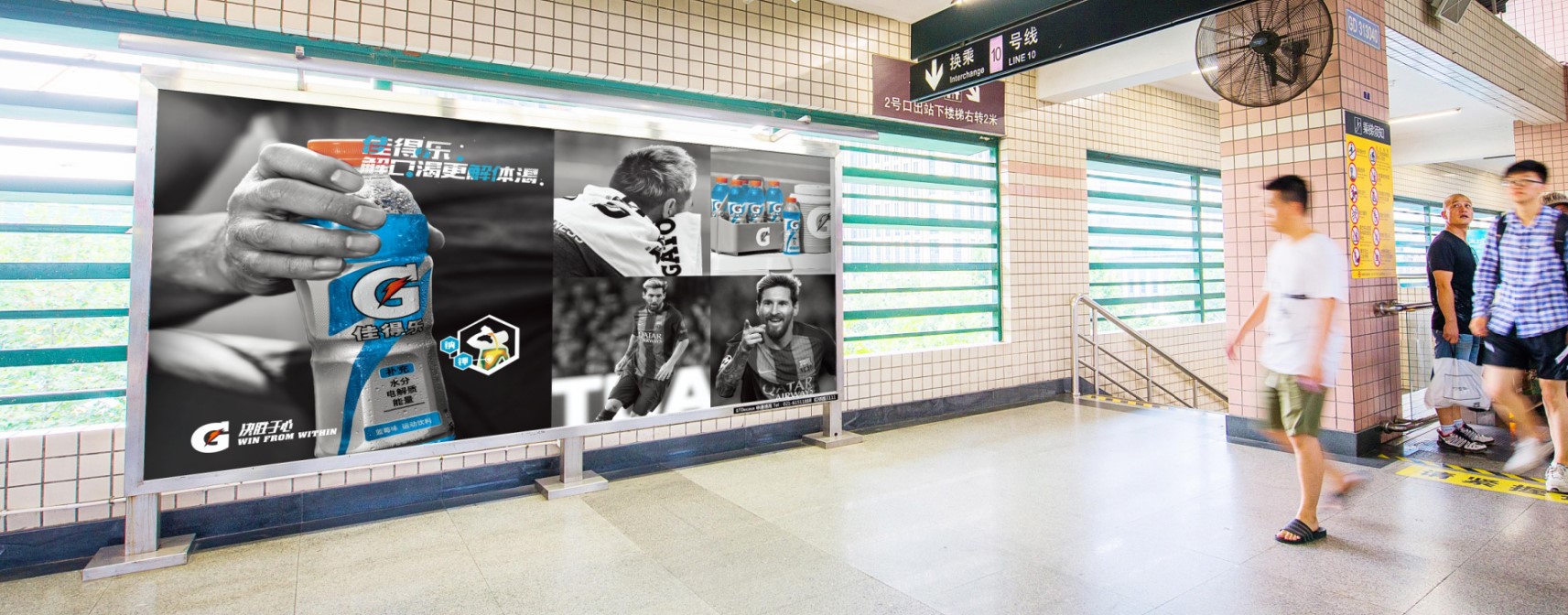 5.9m*2.8m,視覺效果強烈 創(chuàng)意空間大,彰顯品牌大氣 全線共有20塊,均為換乘必經(jīng)區(qū)域