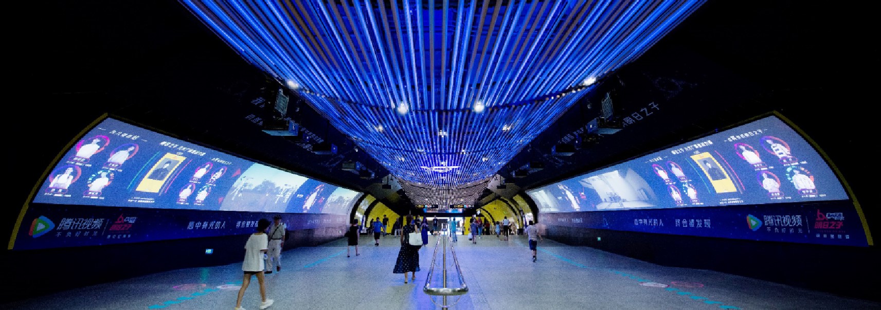 由 電子屏 與 超級動感燈箱,相互交錯組成的電子媒體通道,大面積的靜態(tài)海報與高精度的動態(tài)畫面不斷沖擊乘客視覺;頂部天花板與通道內(nèi)柱體的鏡面環(huán)境設(shè)計從空間上帶來沉浸式的3D體驗;每個區(qū)域的定向音響環(huán)繞聲系統(tǒng) 從聽覺上刺激乘客的感官體驗 ,日均客流達55萬*人次 支持動畫、TVC、電子海報等,可制作各種大型創(chuàng)意效果