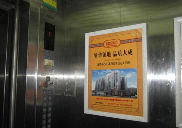 2、廣告閱讀的有效頻次高,到達率更高達95%。每人每天廣告畫面至少四次闖入他們的視線,電梯廂體的空間小,決定了廣告閱讀的不可避免和反復(fù)性,是其它媒體所不可能具有的廣告閱讀的強制性。