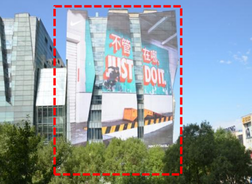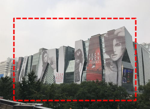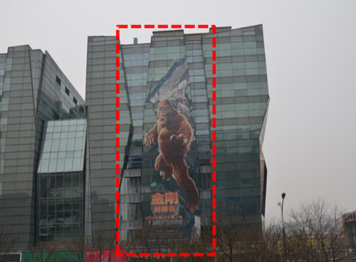 創(chuàng)意方案三:整面(朝東);廣告總面積: 2800m²(圖片為改造前的實景照片) 發(fā)布費用:(7天:460萬) 制作費有+上下刊費用:84萬