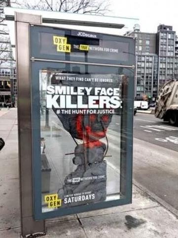 現(xiàn)在已經(jīng)有很多案例表明不斷地有公司在研究更具體驗(yàn)感、創(chuàng)造性的戶外廣告,比如在公交車候車亭創(chuàng)造出更為復(fù)雜的表現(xiàn)形式。就像下面這個(gè)候車亭廣告,為了宣傳驚悚電影《笑臉殺手(The Smiley Face Killers)》,采用透明的裝飾柜效果打造出一幅謀殺泰迪熊的場(chǎng)景,讓人汗毛豎立的同時(shí),又忍不住想多看幾眼。