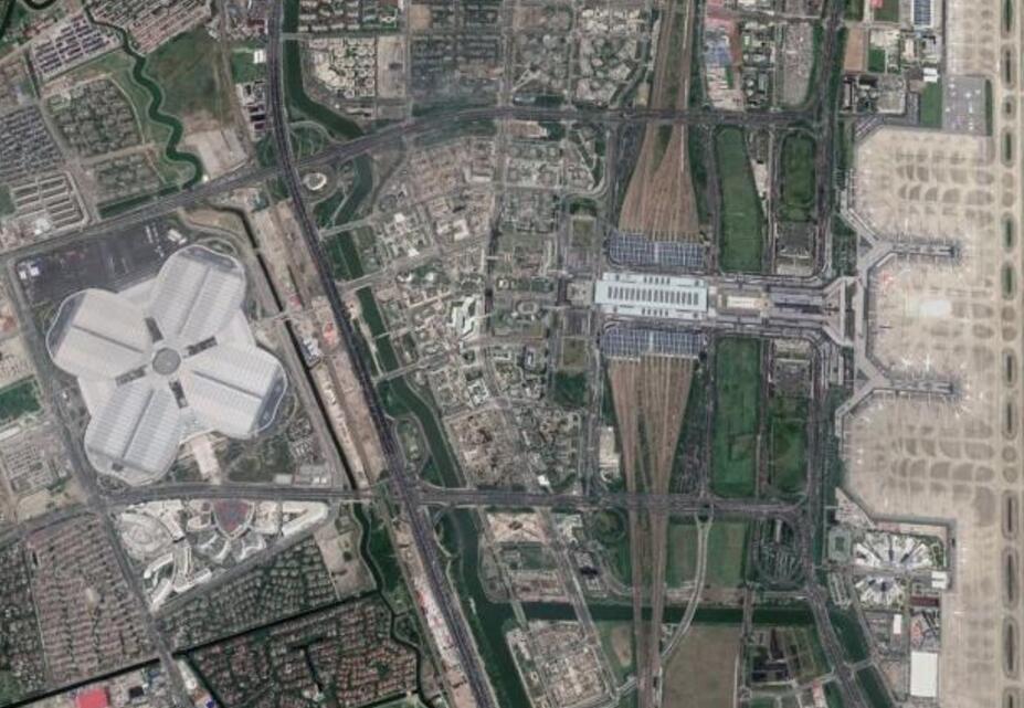 北京大興國際機場,是建設在北京市大興區與河北省廊坊市廣陽區之間的超大型國際航空綜合交通樞紐。(2040年)按照客流吞吐量1億人次,飛機起降量80萬架次的規模建設七條跑道和約140萬平方米的航站樓,機場預留控制用地按照終端(2050年)旅客吞吐量1.3億人次,飛機起降量103萬架次,九條跑道的規模預留。預計今年年底啟用。